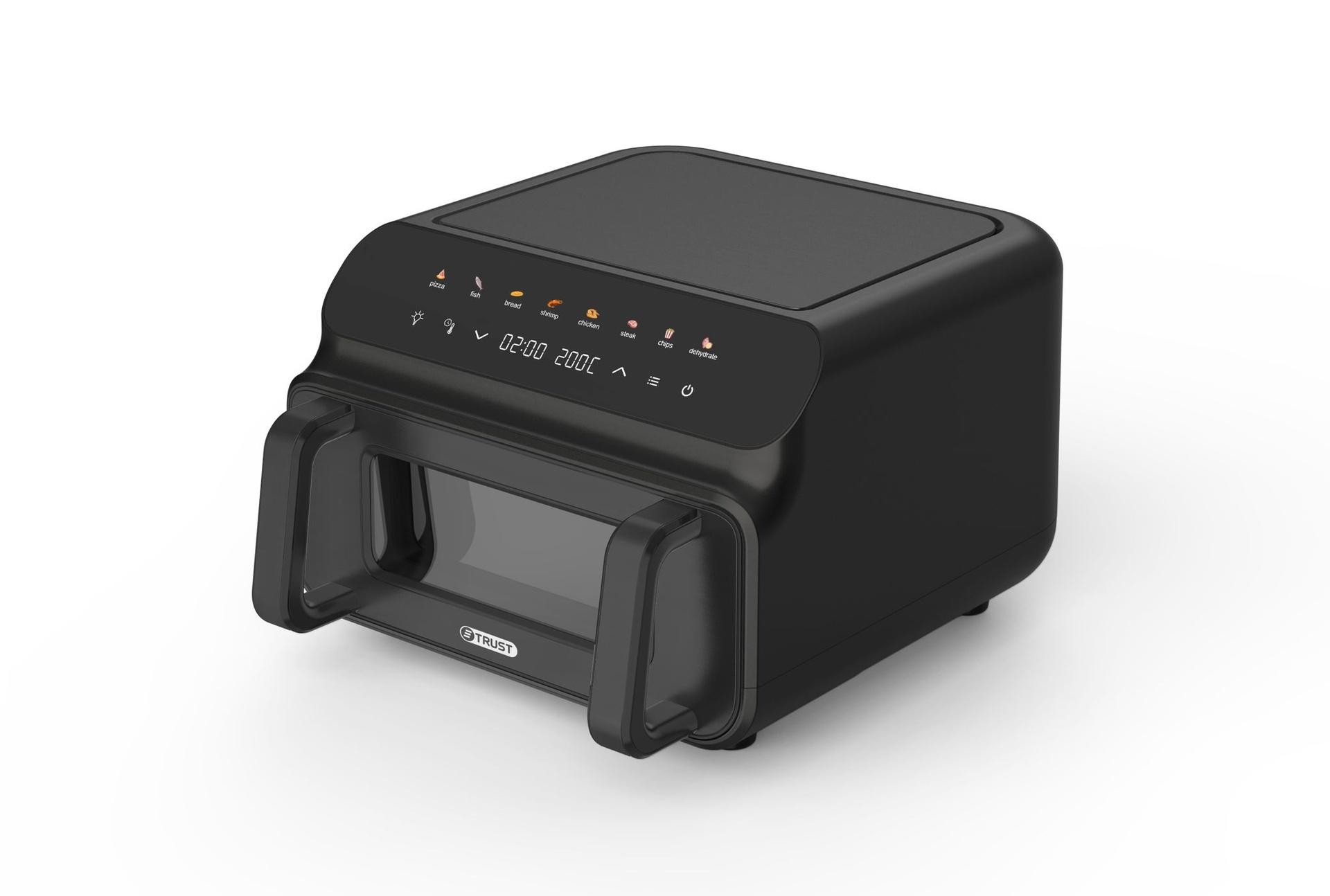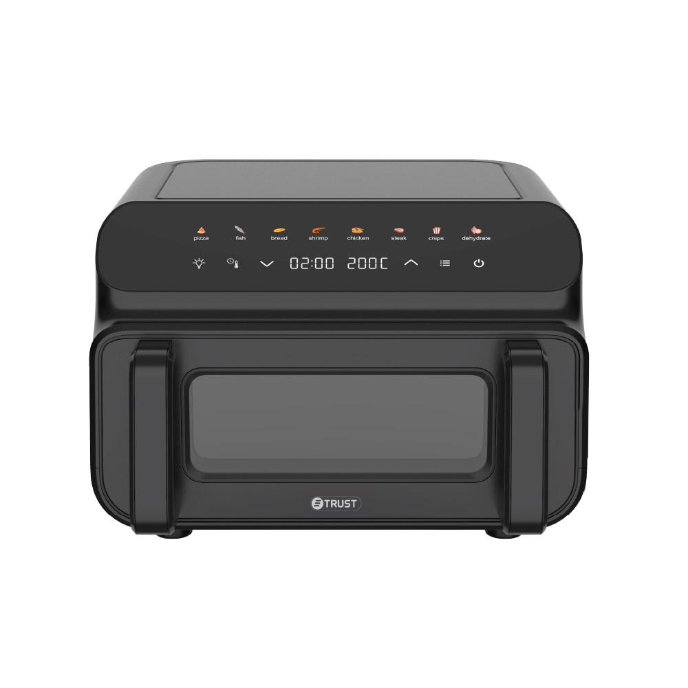 SpecificationsAluminum rack.• 8 Pre-set Programs.10L Indoor grill & air fryer + pizza tray.Cooking preset 01-60 min timer Adjustable.Cooking preset 80-230°C Adjustable.•220~240V. 50/60Hz. P: 2000W.