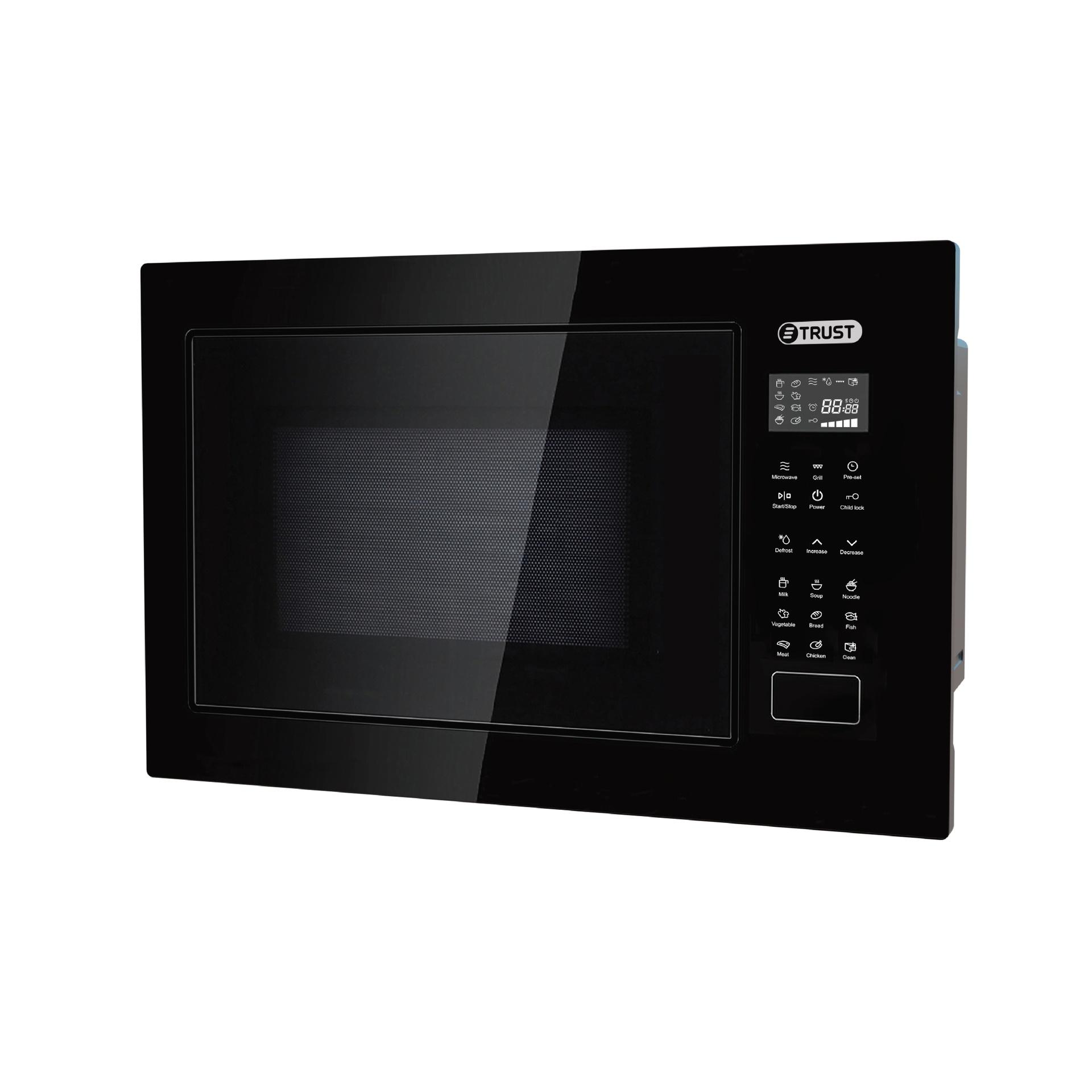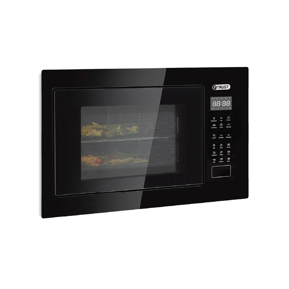 SpecificationsLED display.Glass surfacePush button door.Capacity 25 Liters.• Stainless steel cavity.• 315 MM Glass turnable.60 minutes digital timer.• Cooking end signal, Child safety lock.• Product Size: 595W X 390H X 382Dmm.230V~50Hz.