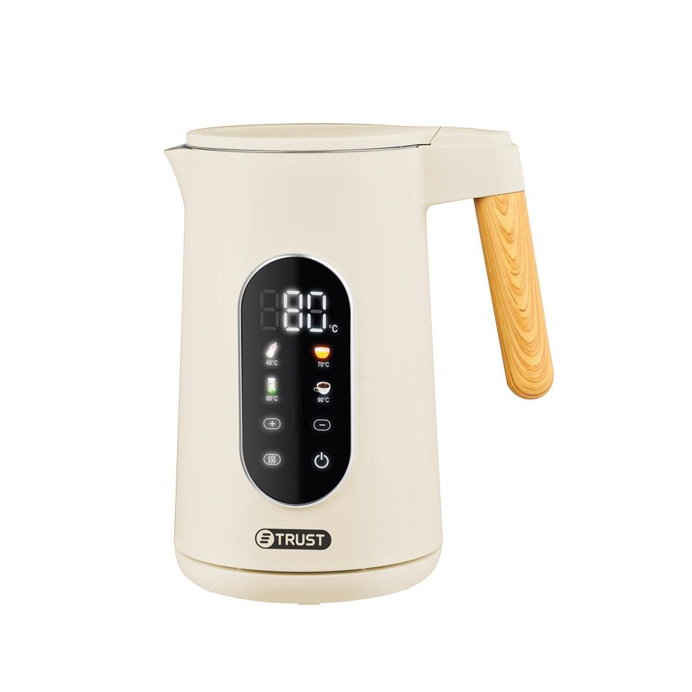 SpecificationsLarge digital temperature screen.13 Settings for different needs.Inside 304 stainless steel, Outside PP.KettleMemory function & 2 hours keep warm.Four pre-set temperatures:40°C, 70°C, 80°C, 90°C.