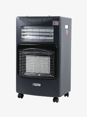 Specifications Gas power: 1.3- 4.2 KW. • Radiant heating system. • High thermal efficiency • Piezoelectric ignition. Back space for gas bottle, 8-15 KG. • Equiped with oxygen depletion system & flame failure device. Electric Power: 220~240v, 50/60Hz.