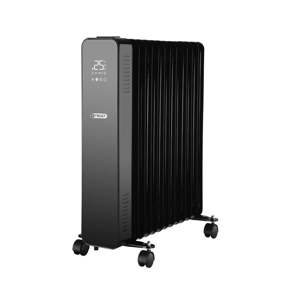 Specifications13 Fins.Black color.Sensor touch control.Over heat protection.• Large heating surface.Castors for easy moving.• Voltage: 220~240V, 50/60Hz, 2500W.