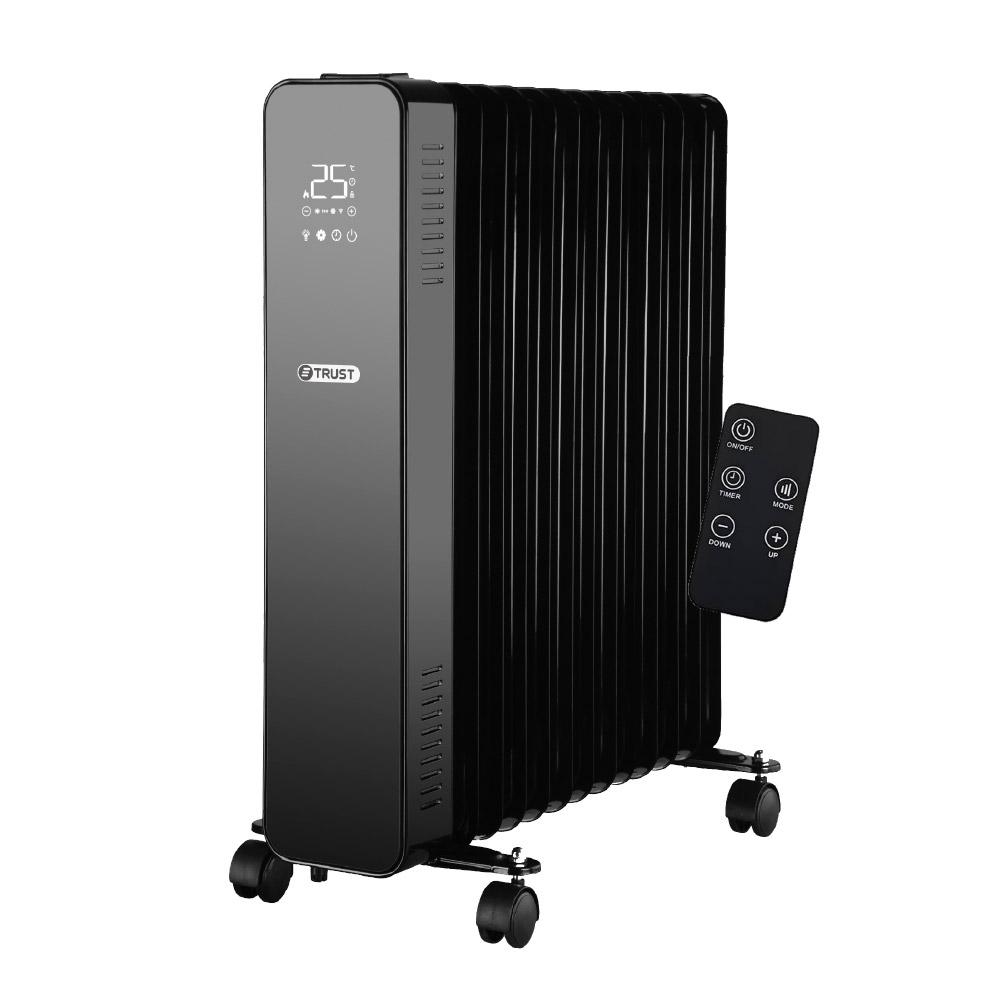 Specifications13 Fins.Black color.Sensor touch control.Over heat protection.• Large heating surface.Castors for easy moving.• Voltage: 220~240V, 50/60Hz, 2500W.