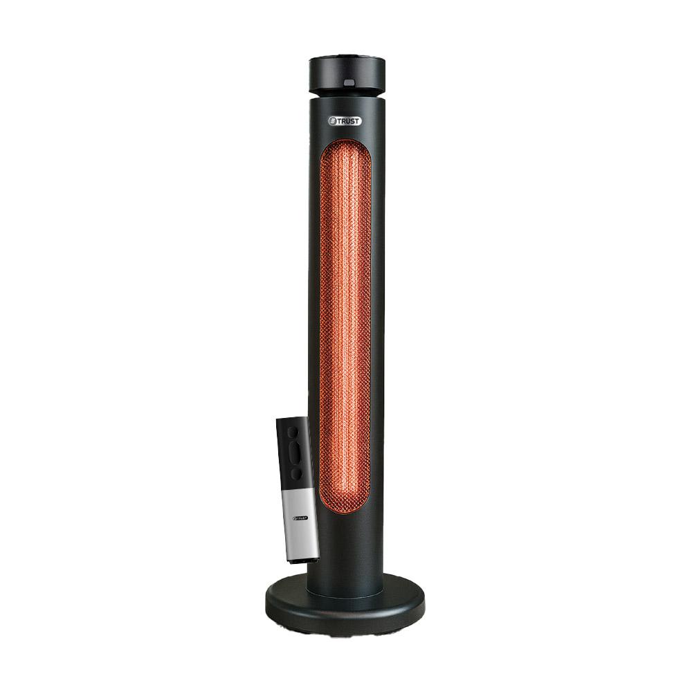 Specifications:• Carbon fiber tube heating element.Built-in electronic tip-over switch.Timer function (up to 8 hours).IP45 Waterproof Rating.• Remote control.• Power: 2000W, V: 220-240V, 50/60Hz.