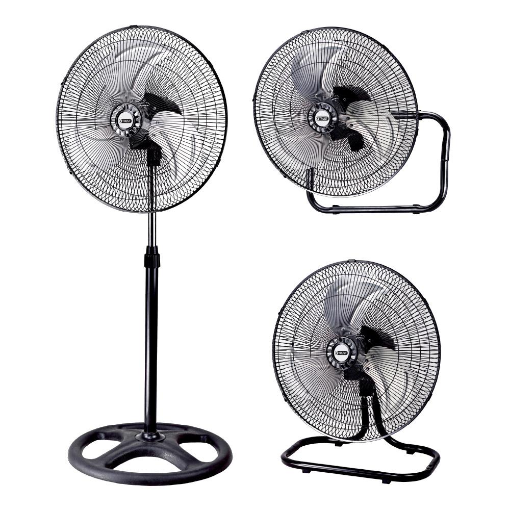 Specifications:•18" Industrial fan (Stand, Wall & Desk).•3Copper motor 100%.Metal blades.Height: 130cm.Wheels base.