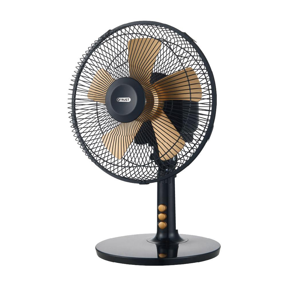 Specifications:Size: 9" (23cm).• Mechanical 3 Speeds.• 5 PP Right-Angle Blades.• Adjustable fan head.• Golden color injection fan blaadeblade, push buttons.Auto-Oscillation (Left/Right).2x0.5mm² Pure Copper Power Cord.
